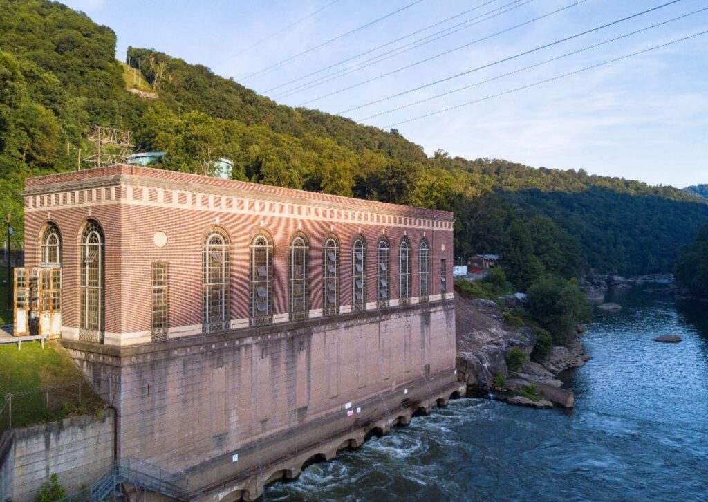 La presa crea un tramo desviado de 5,4 millas de largo y la central eléctrica está ubicada a solo 1,5 millas río arriba de la confluencia de los ríos New y Gauley, donde estos ríos se fusionan para formar el río Kanawha.